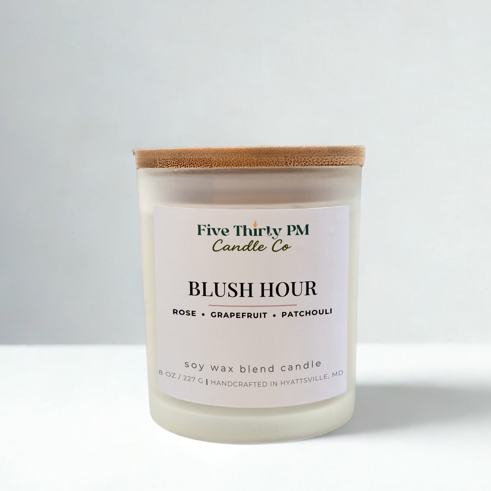 Blush Hour is a fresh, modern take on a rose scent. Bright basil and grapefruit open with a light, green touch before blooming into soft rose and delicate magnolia. A gentle hint of patchouli adds warmth and balance, keeping the floral notes smooth and grounded.